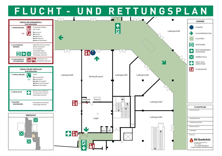Für Sie als Kunde erstellen wir umfassende Flucht- und Rettungspläne, die speziell auf Ihre individuellen Bedürfnisse und Anforderungen eines Gebäudes zugeschnitten sind. Diese Pläne werden entwickelt, um im Falle eines Notfalls eine schnelle und sichere Evakuierung zu ermöglichen und das Leben von Personen zu schützen.